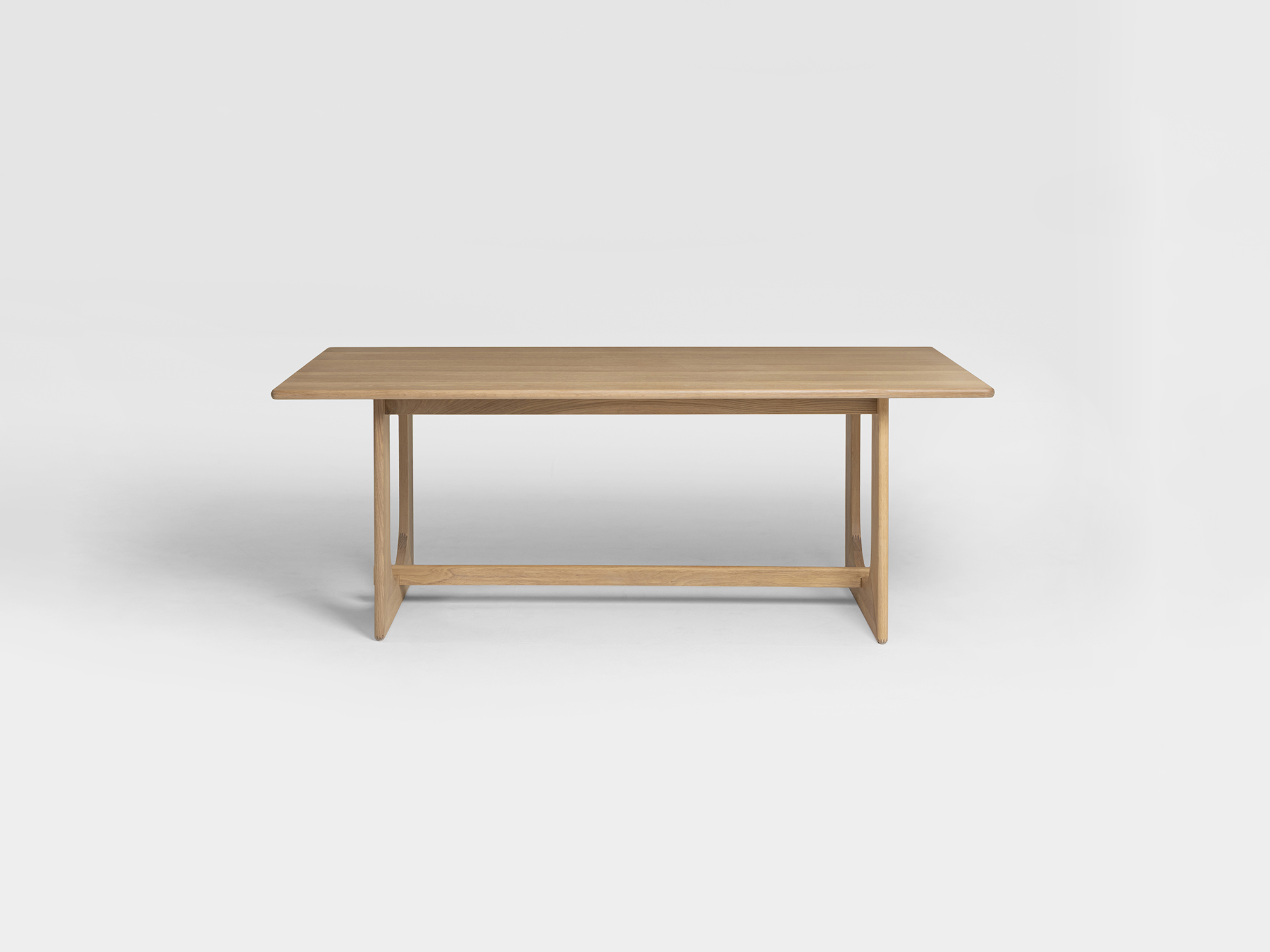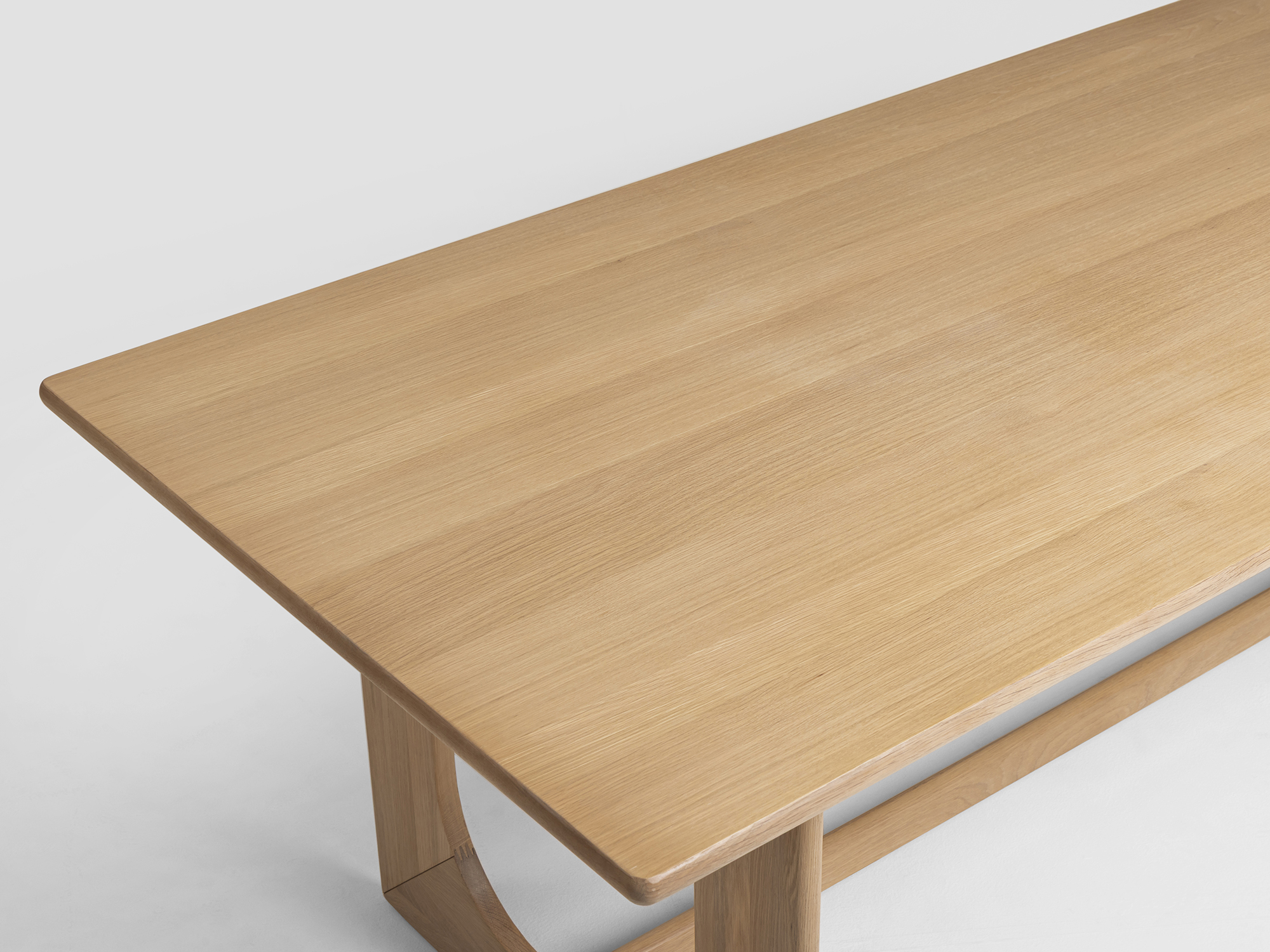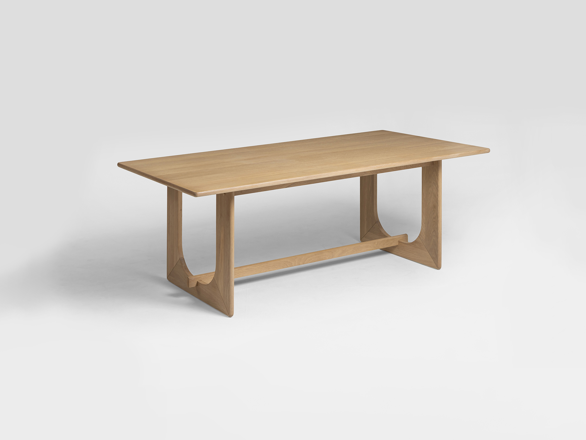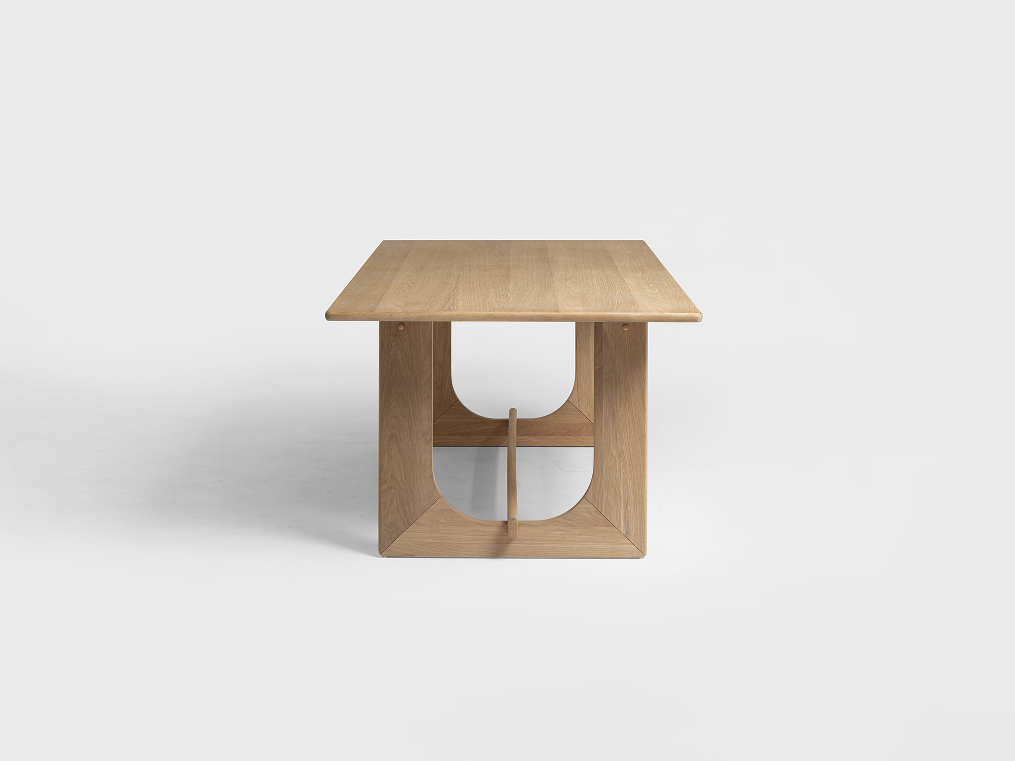 The Arch dining table beautifully pairs natural materials and sculptural forms. The table is created with solid timber veneer top and solid wood base. Finished in natural Tung oil. Design by: Anders Östberg