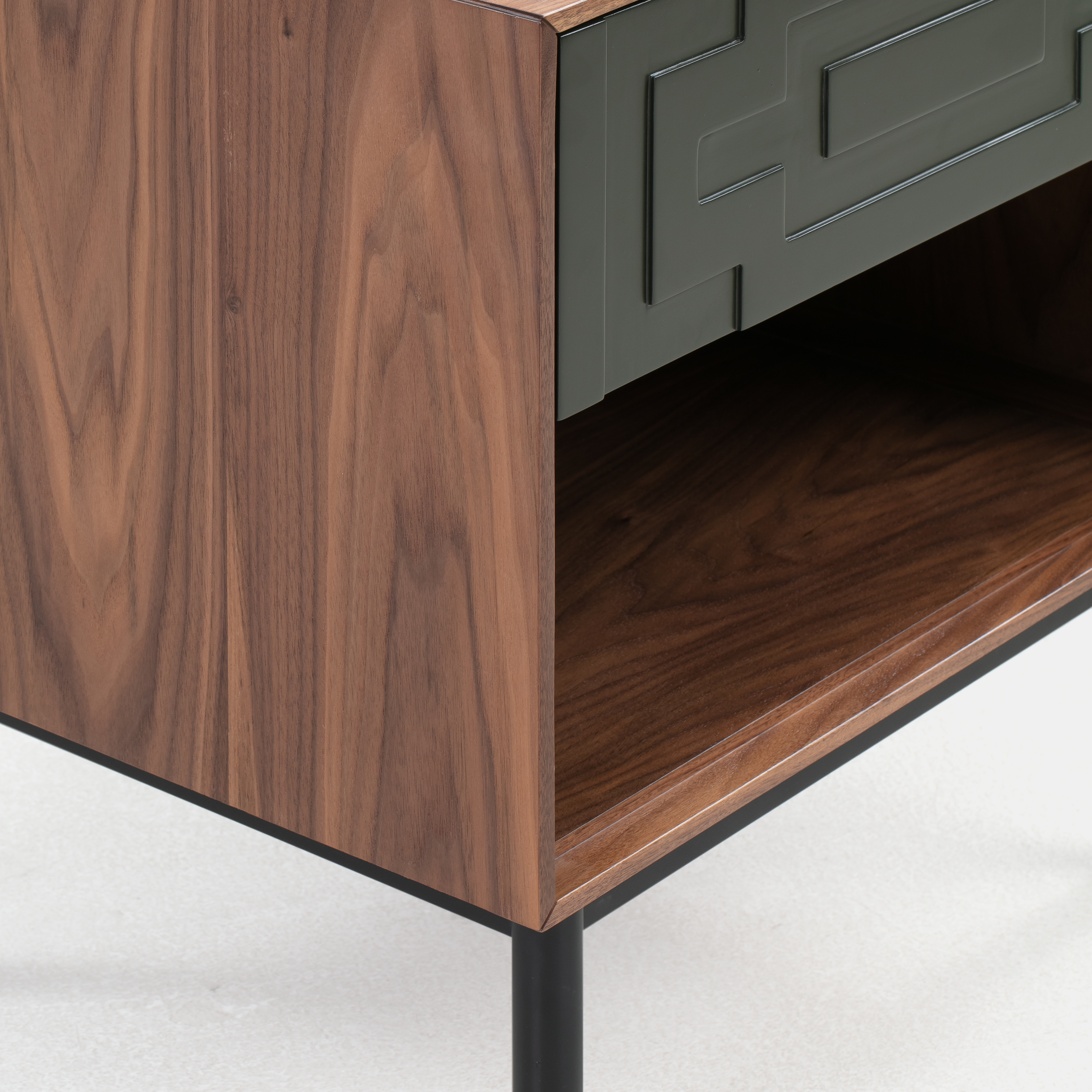The Cabo bedside table with the iconic patterned drawer front. Design by Anders Ostberg.