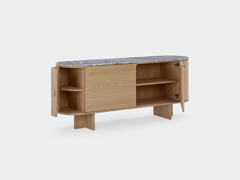 Sideboard with marble stone top and solid timber base. Available as full solid timber option. Design by Says Who