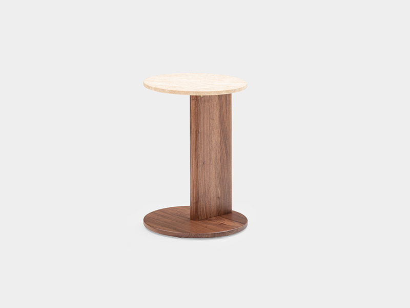 Side table with marble stone top and solid timber base. Available as full solid timber option. Design by Says Who
