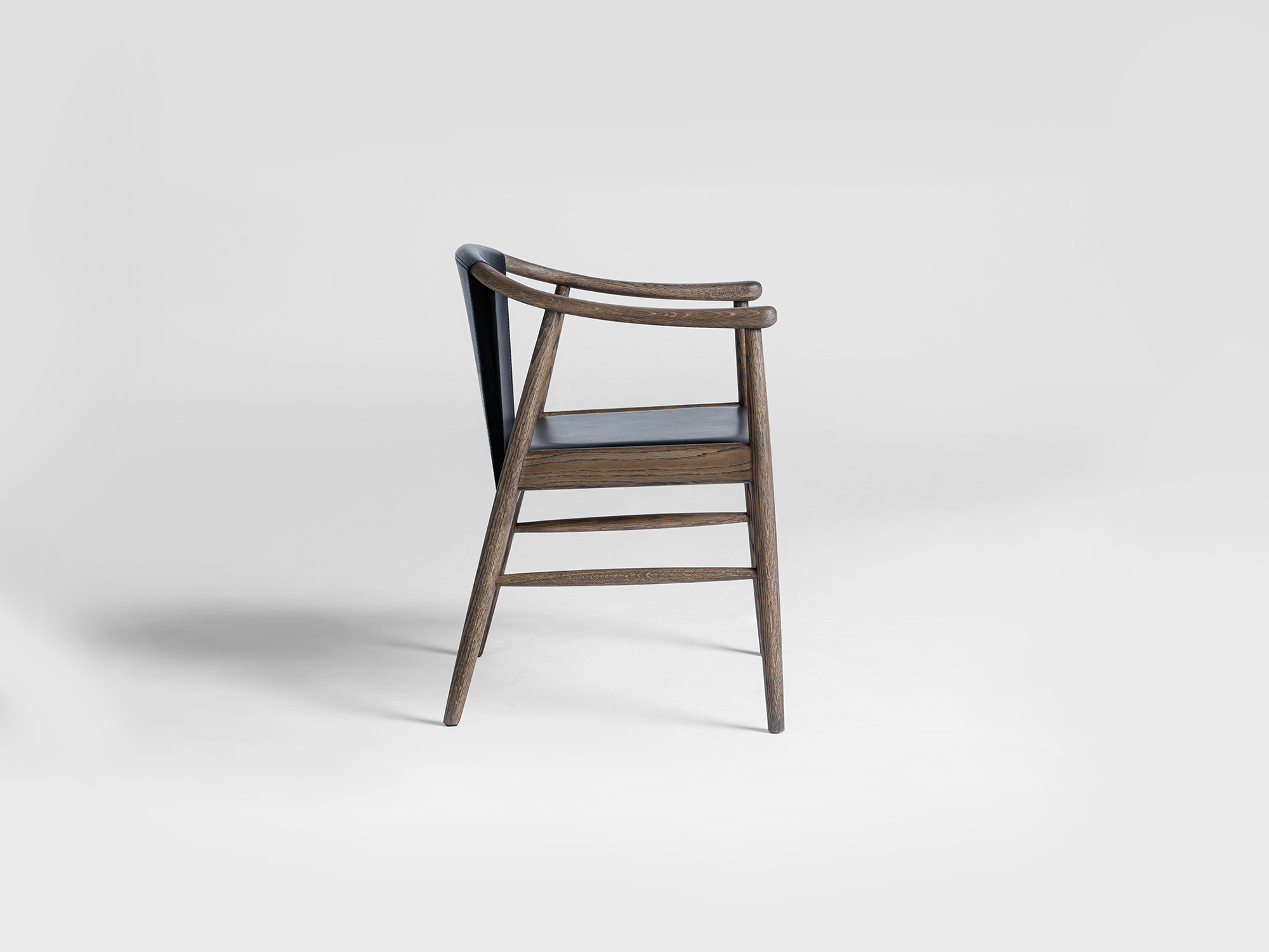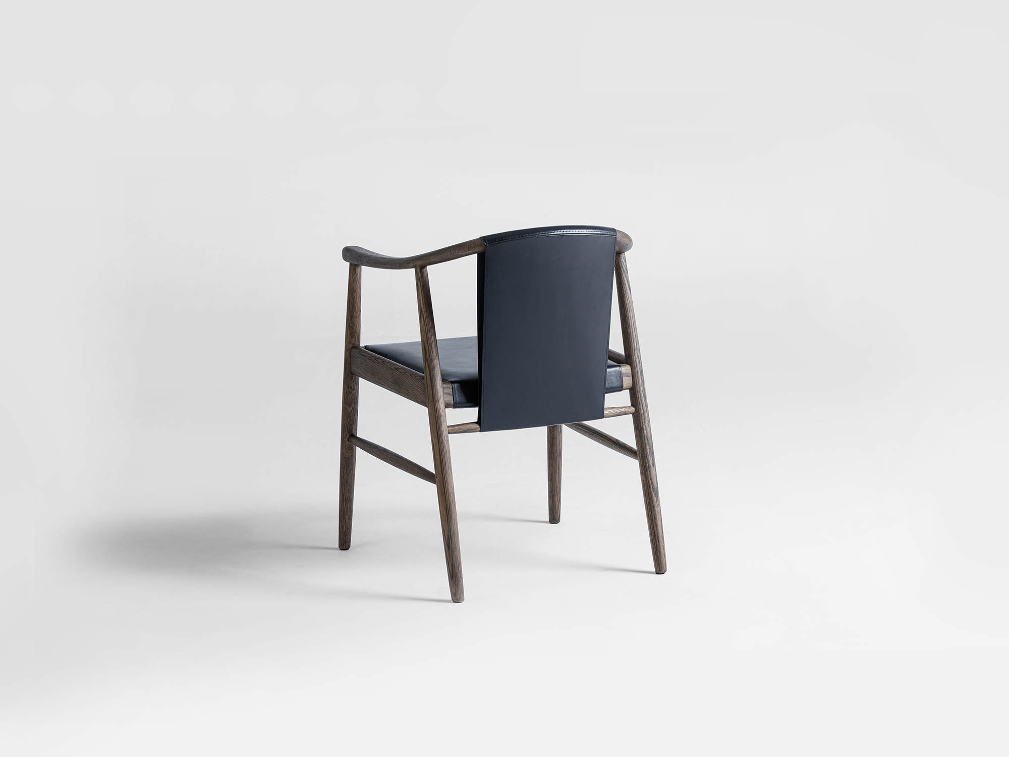 The Shibuya dining chair made in solid timber with a leather seating. Design by Says Who.