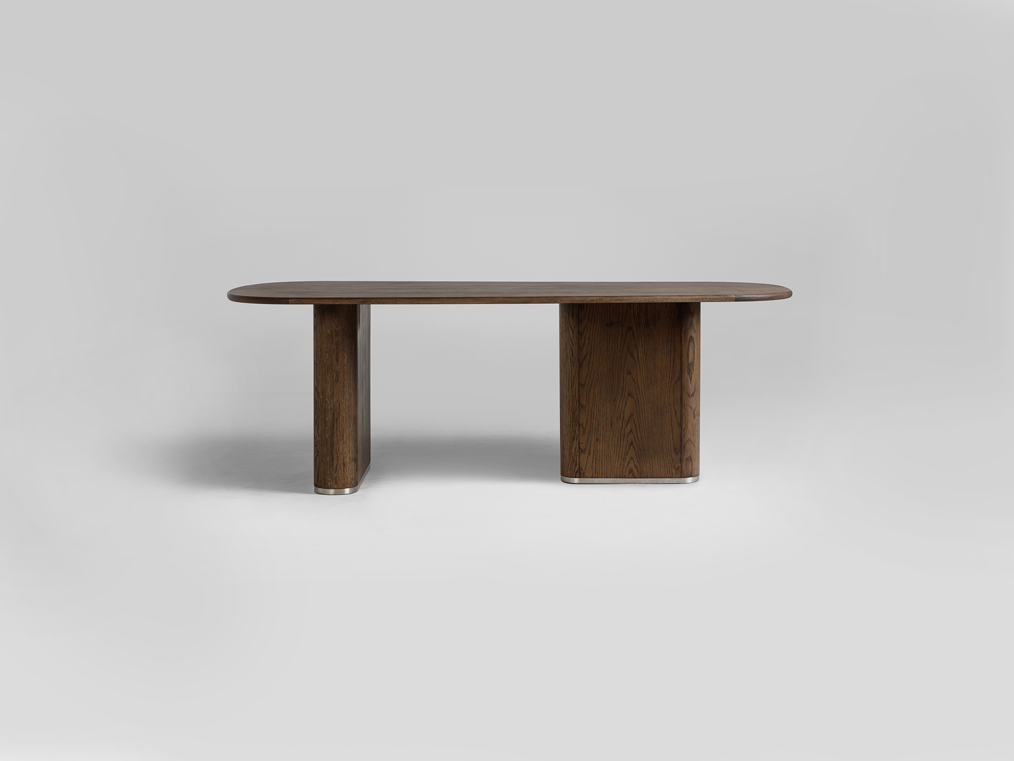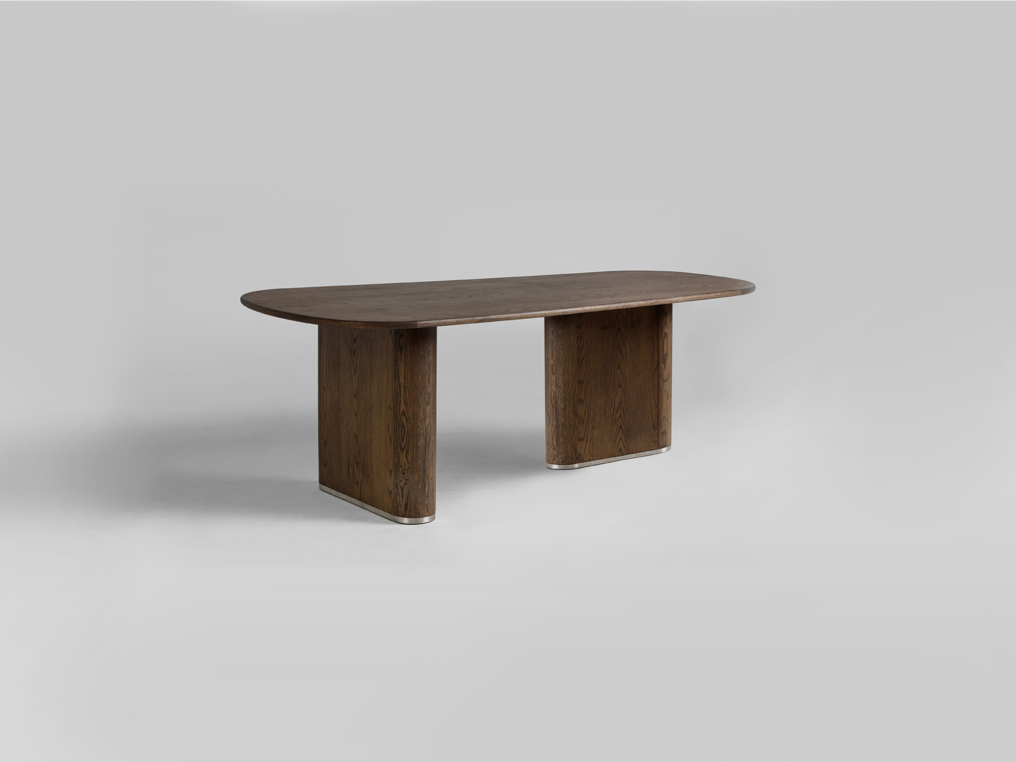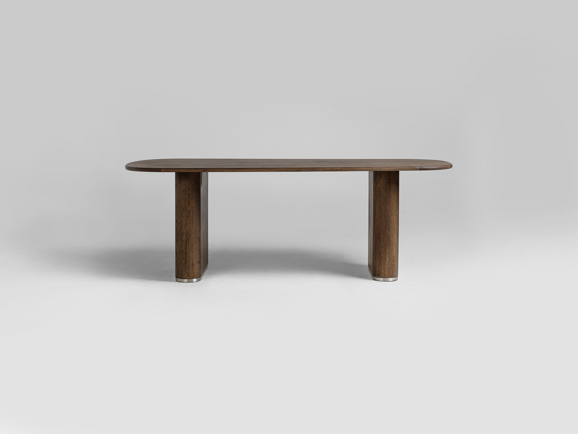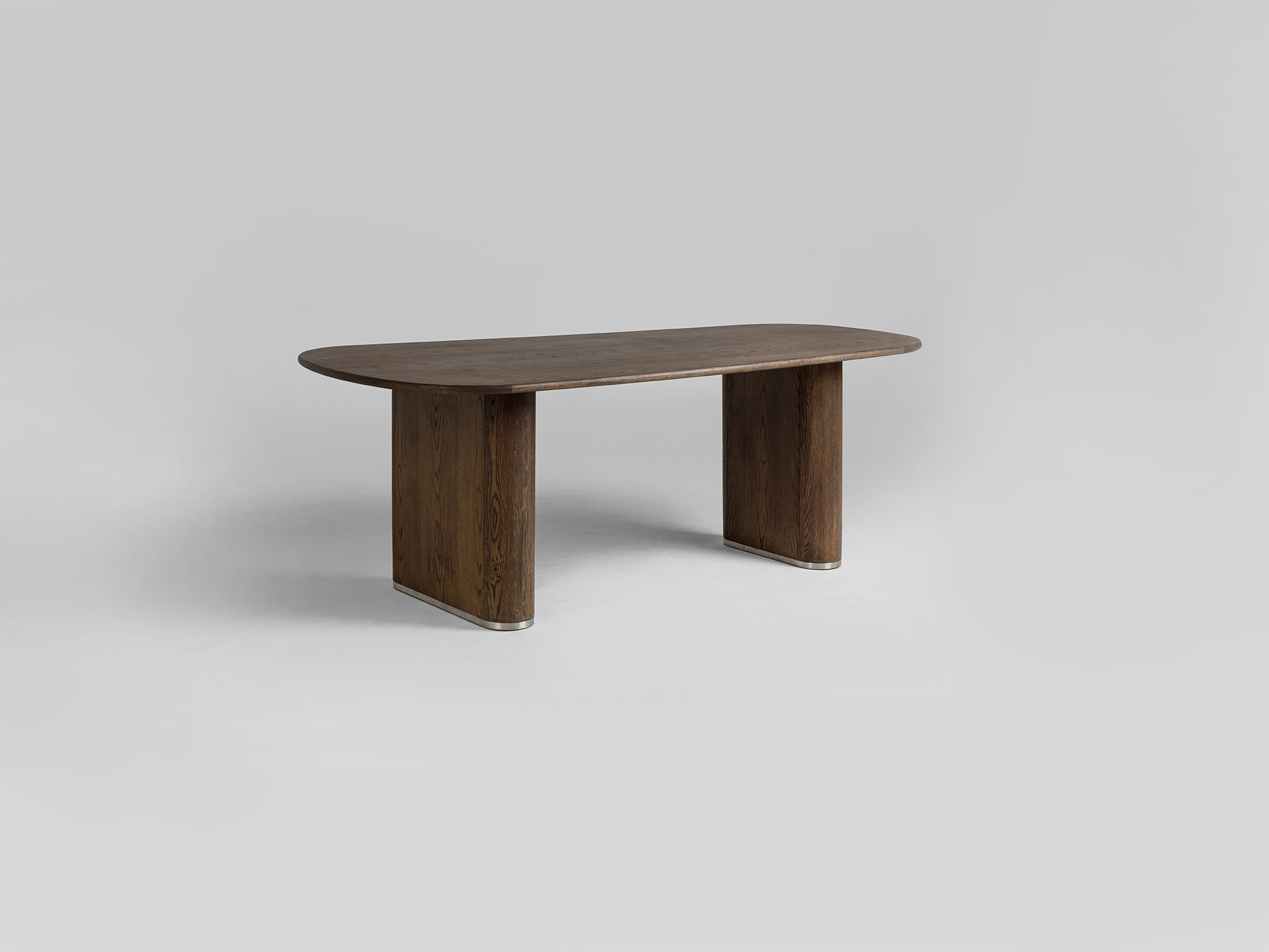 The Shibuya dining table in Vintage black Oak with the horizontal leg configuration. Also available with the standard paralell leg configuration. Design by Says Who.