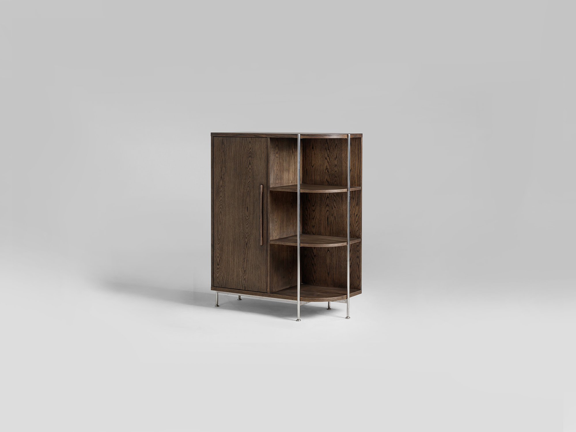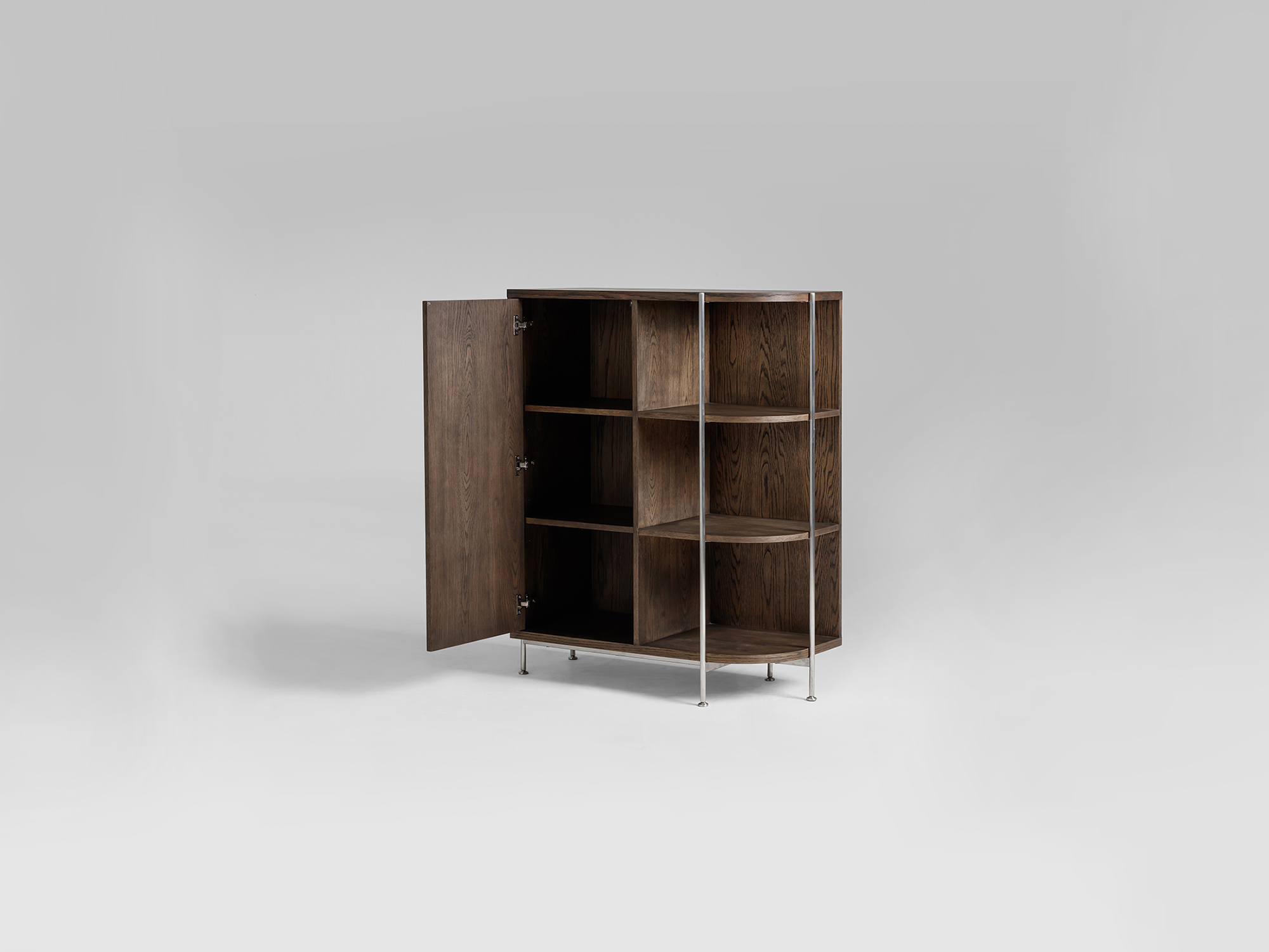 The Shibuya high cabinet in Walnut or Oak and brushed stainless steel. Design by Says Who.