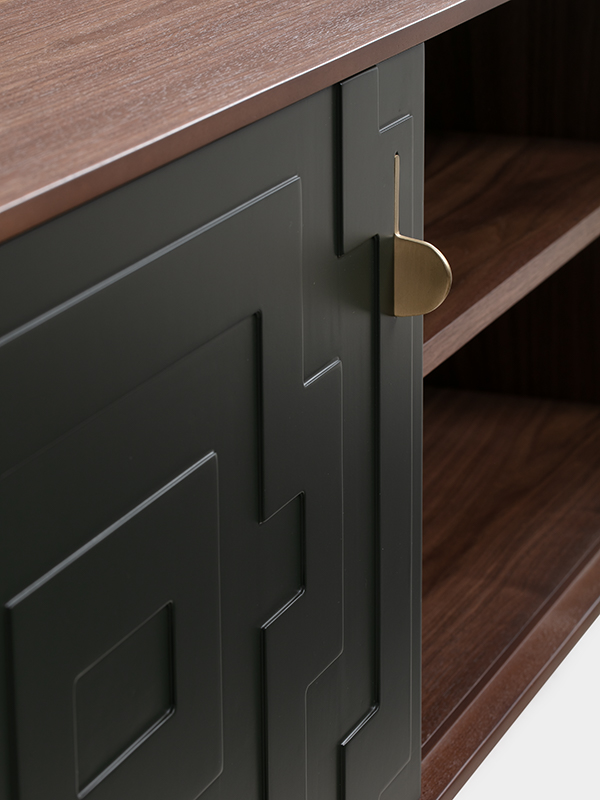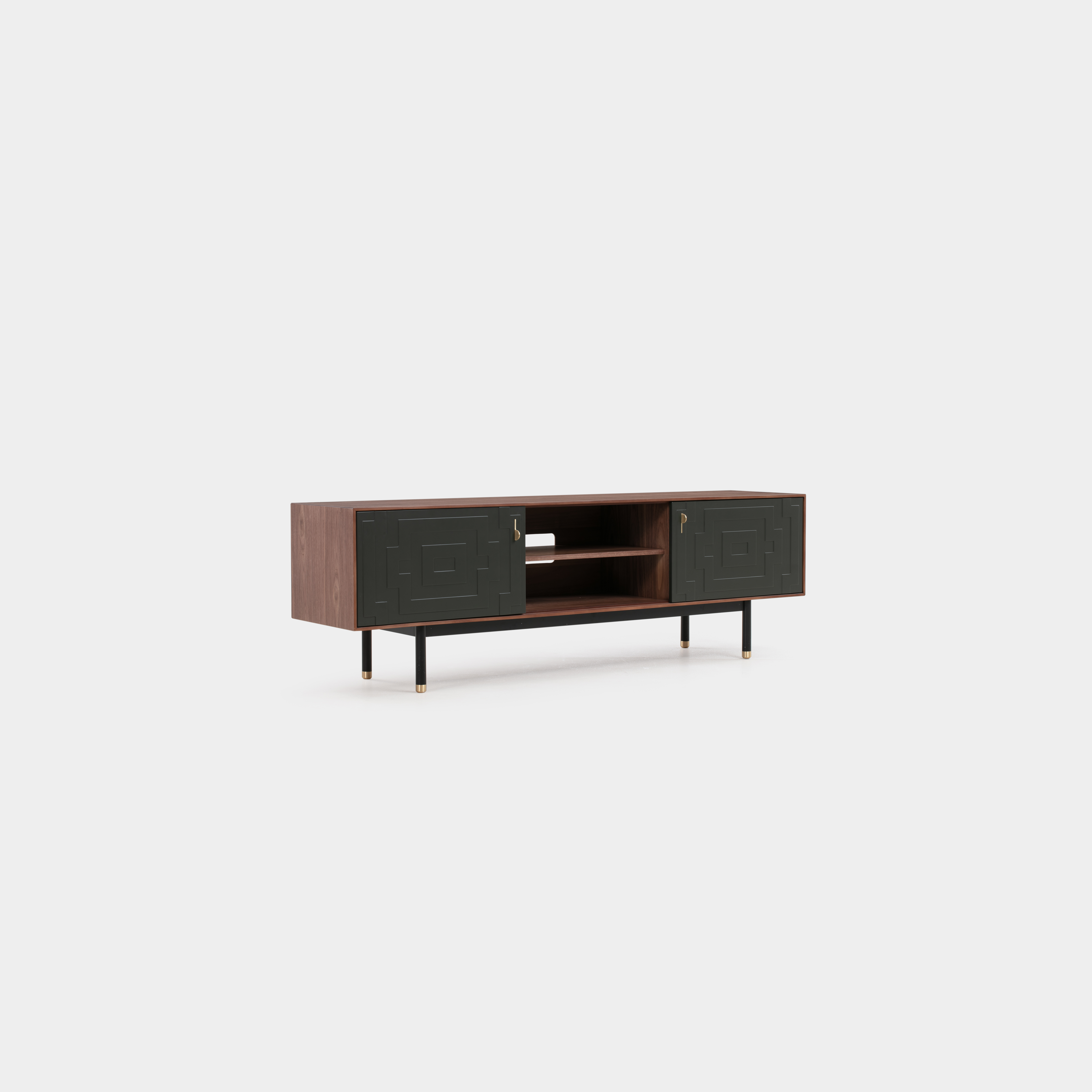 The Cabo TV unit with brass hardware and patterned fronts. Design by Anders Ostberg.